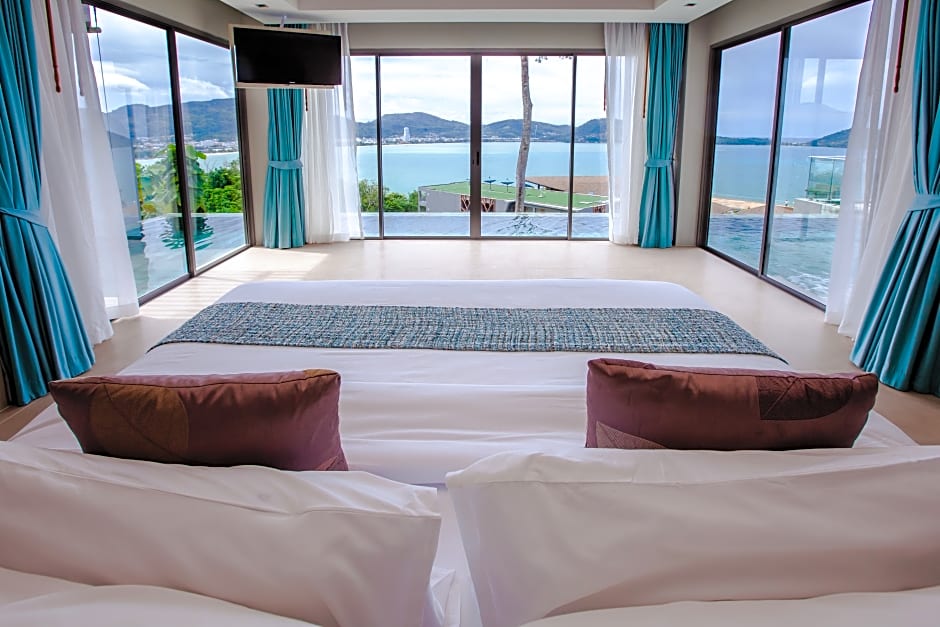 PRIVATE POOL TWO BED ROOM WITH OCEAN VIEW is 3886 square feet and includes a king-size bed 150-183 width plus a sofa bed plus living room and extra beds on demand.
